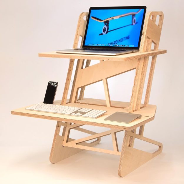 Just one of the hundreds of different ways you can use one of our standing desks. Slide the parts together, pop it on your desk and